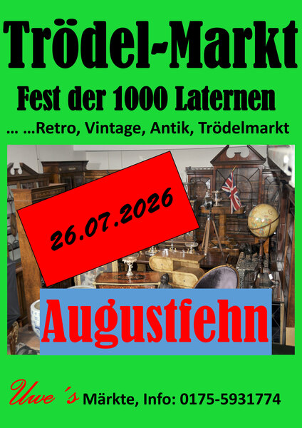 Das Fest begann vor 77 Jahren ganz banal mit der Ausschmückung aller Straßen unter Zuhilfenahme einiger bunter Laternen. Damals waren die Bürger und Besucher derart fasziniert, dass diese Veranstaltung sehr schnell zu einem „Hotspot“ wuchs und heute gigantische Maße einnimmt. So sprechen wir heute nicht mehr von einigen bunten Laternen, sondern von einem Lichtermeer an bunten Lampen und Laternen. Schon damals gab es einen kleinen Flohmarkt, der heute die ganze Stadt einnimmt und locker 300 Stände beherbergt. Wer hier schwänzt macht genauso einen Fehler, wie damals, wenn man dem Unterricht fernblieb. Dabeisein ist Alles. Menschenmassen, unzählige Stände, tolle Ausschmückung des ganzen Ortes, eine angrenzende Kirmes…und das Ganze…als Einleitung des Jahreskalenders, wo jedermann darauf aus ist dem Winter zu entfliehen und nach draußen zu gehen. Sollten Sie Interesse haben mit Ihrem Stand oder auch als Besucher teilzunehmen, so kontaktieren Sie uns. Die Standgelder halten wir moderat, Eintritt wird nicht erhoben. Nähere Infos auch unter Ci-products.de…Termine…Augustfehn…..Anmeldung