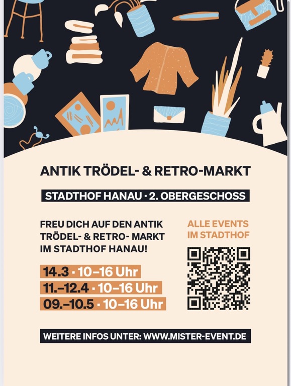 Am Samstag, den 14.03.2026, und danach jedes 2. Wochenende (Samstag/Sonntag) wird der Stadthof Hanau zum Treffpunkt für alle Antik- und Trödelfreunde.