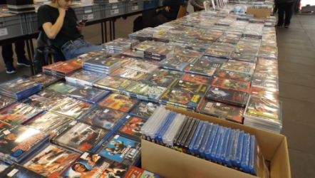 Schallplatten- & CD-Börse mit Film-/DVD-/Video-/Blu-Ray-Disc-/Comicbereich in der Friedrich-Ebert-Halle in Ludwigshafen, bei der man bei zigtausenden von CD’s und Schallplatten die Qual der Wahl hat.