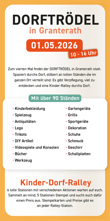 Für die Kleinen gibt es eine Kinderrallye durchs Dorf, bei der Aufgaben erfüllt und Stempel gesammelt werden müssen und es zur Belohnung Preise gibt. Außerdem steht am der Mehrzweckhalle eine Hüpfburg.