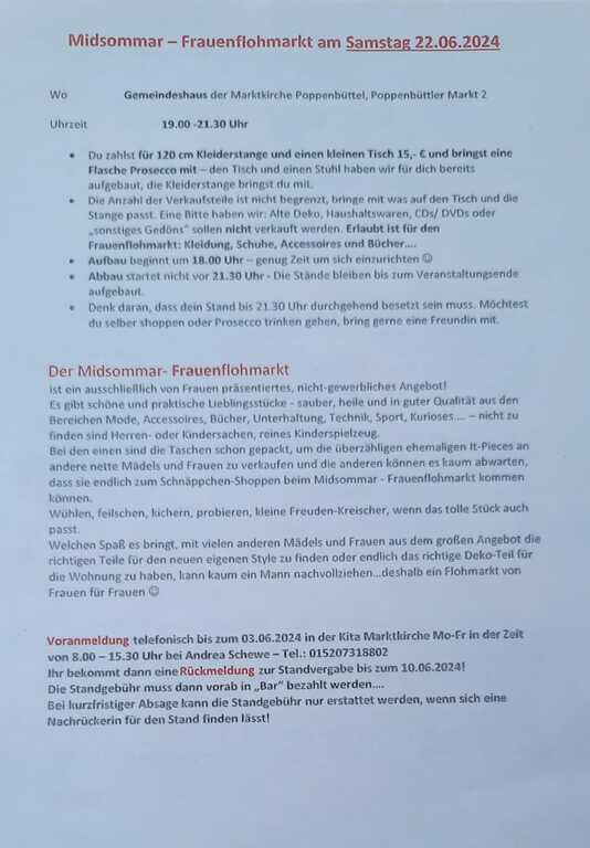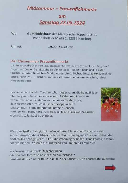 Der Midsommar-Frauenflohmarkt ist ein ausschließlich von Frauen präsentiertes, nicht-gewerbliches Angebot!