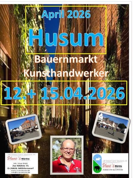 Eine Woche nach Ostern noch in der vollen Urlauber- und Reisezeit gestalten wir einen Hobby- und Kunsthandwerkermarkt auf dem Marktplatz von Husum. Die Jahreszeit, wie auch die Wochentage Sonntag - Mittwoch sind ideal um Urlauberinnen- und Urlauber gleichermaßen zu erreichen, wie die Bürgerinnen und Bürger der Stadt Husum. An den Wochenenden finden überall Veranstaltungen statt, aber innerhalb der Woche, zudem in der Pfingstferienzeit wird meist sehr wenig angeboten, obwohl die Städte massiv voll sind. Also, was hindert euch daran zu partizipieren? Bewerbt euch möglichst bald, da auch der Marktplatz von Husum nicht unbegrenzt in seiner Größe ist. Der Eintritt ist frei. Parkplätze sind ausreichend verfügbar. Nach dem großen Erfolg 2025 und auf Wunsch vieler Aussteller.