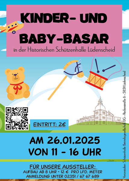 Der Termin steht fest: am 26. Januar 2025 findet in der Historischen Schützenhalle Lüdenscheid unser Kinder- & Baby-Basar statt!