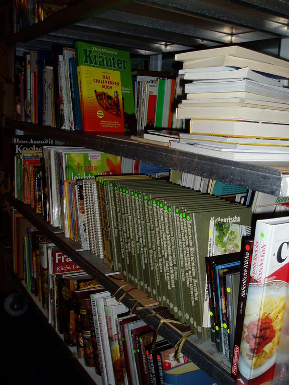 Über 1000 Kochbücher ab 1950 werden aneboten. Diverse Serien und besonder Einzel-Exemplare zu allen Themen von Essen und Trinken. Hier kann jeder etwas für seine Bibliothek, oder das besonderes Geschenk finden. Der Flohmarkt findet im und vor dem Schloss-Café des Wok Küchen-Museums statt. Der Erlöß aus dem Flohmarkt geht zu 100% in die Ernährungs-Bildung der World of Kitchen - Schul- und Lehrküche.