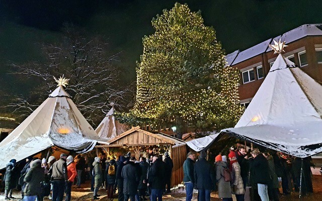 Rund um das Tibarg-Center wird es feierlich und gemütlich! Denn dann verbreitet der mit unzähligen kleinen leuchtenden Lichtern geschmückte große echte Tannenbaum direkt weihnachtliche Stimmung. Darum herum verteilen sich viele kleine, meist schwedenrote, urige Holzhütten und warm erleuchtete große nordische Tipi-Zelte.