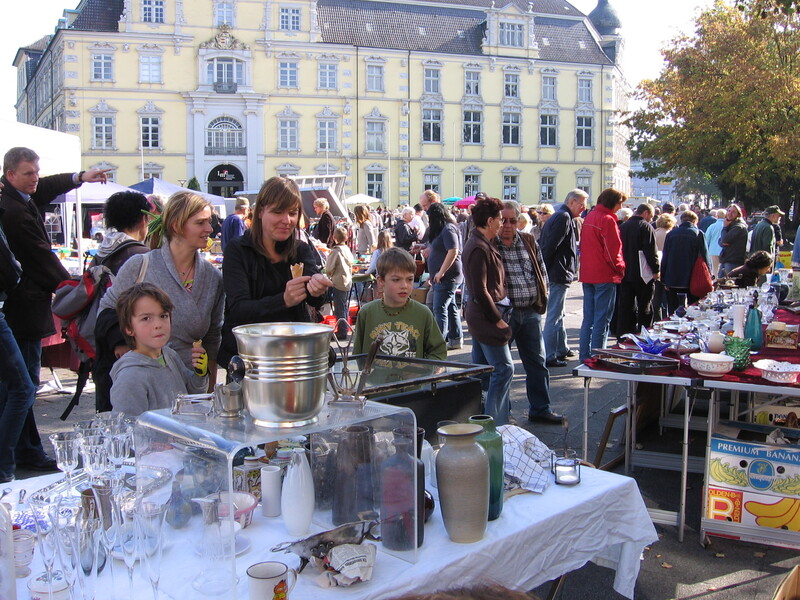 Seit Jahrzehnten findet dieser Flohmarkt auf dem Schlossplatz direkt in der Stadtmitte an der Fußgängerzone von Oldenburg und zusammen mit einem verkaufsoffenen Sonntag statt.